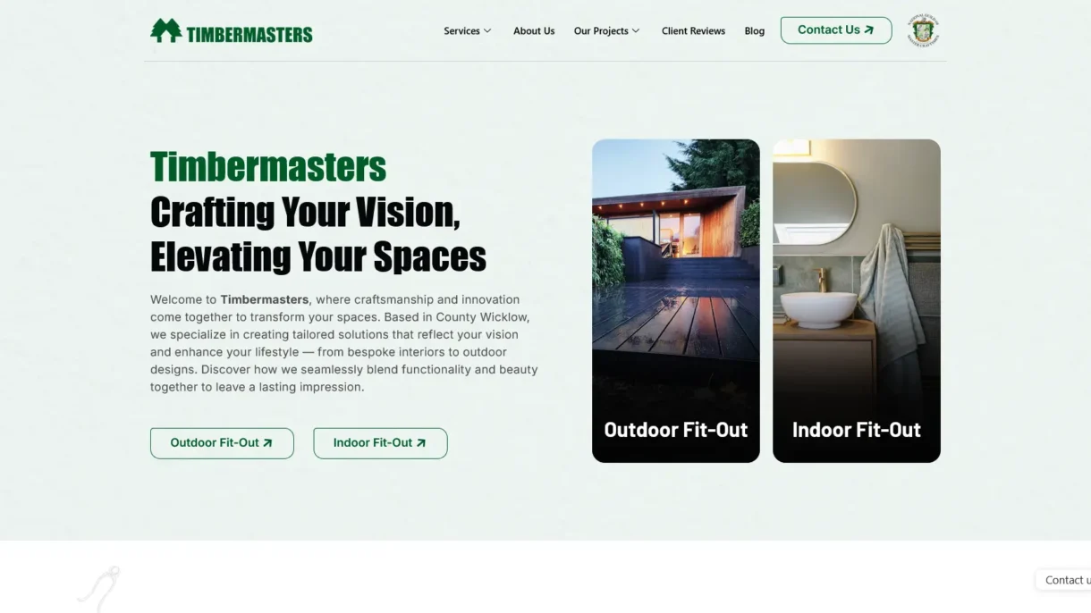 - Crafted a clear information architecture to feature both Indoor Fit-Out and Outdoor Fit-Out service categories, so visitors can immediately understand the full scope of Timbermasters’ capabilities. timbermasters.ie