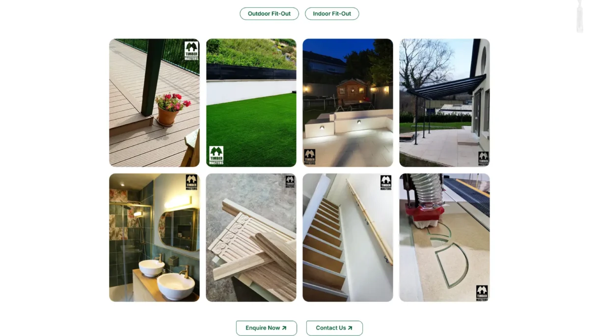 - Integrated a project gallery that allows Timbermasters to showcase completed work — enabling prospective clients to visualise results and gain confidence in the brand. timbermasters.ie